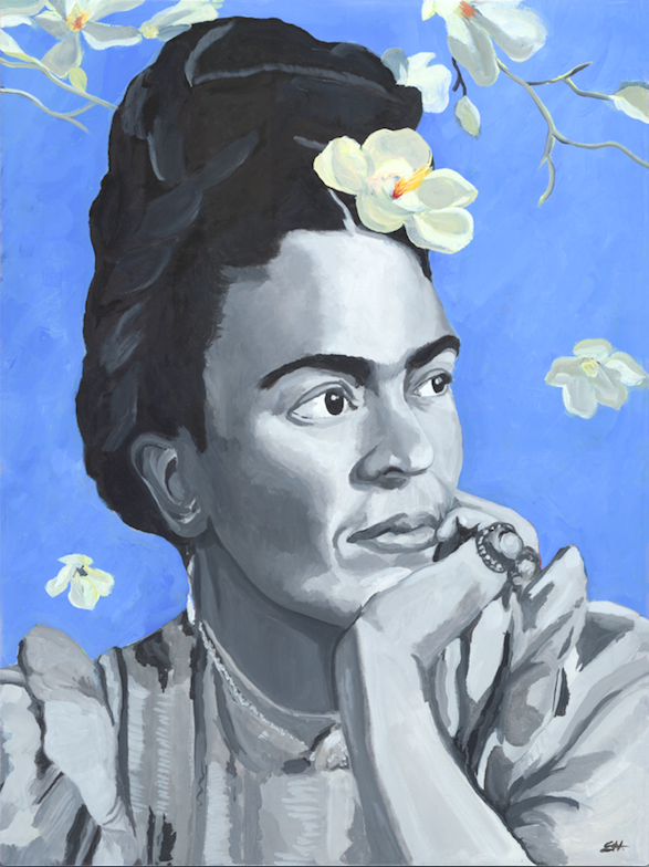 My love affair with Frida began a couple years ago when I saw Salma Hayek’s portrayal of the famous artist in Frida (2002). Frida Kahlo faced many physical challenges in her young life, which affected her chronically. As a young girl, she had Polio, which weakened her legs. When she was in high school, she was involved in a bus crash that left her with lifelong injuries. She began painting as a way to pass the time during her recovery. She had an easel custom built to be positioned above her while she laid on her back so that she could occupy her time during her recovery. Frida painted herself using a mirror. She explored themes of pain, identity, death, Mexican culture in a post-colonial society through her work.